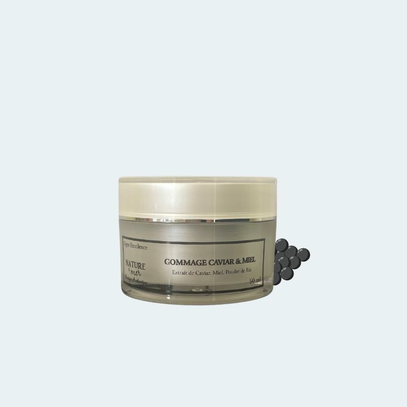 Le Gommage Caviar & Miel exfolie la peau en douceur grâce à la poudre de riz, éliminant en douceur les cellules mortes et affinant le grain de peau. Sa formule est enrichie en extrait de caviar et en miel, deux actifs précieux qui aident à révéler l’éclat naturel de la peau et contribuent à lisser le grain de peau. Sa texture fondante, délicatement nacrée, offre un véritable moment de plaisir sensoriel, sublimé par un parfum léger et enveloppant.